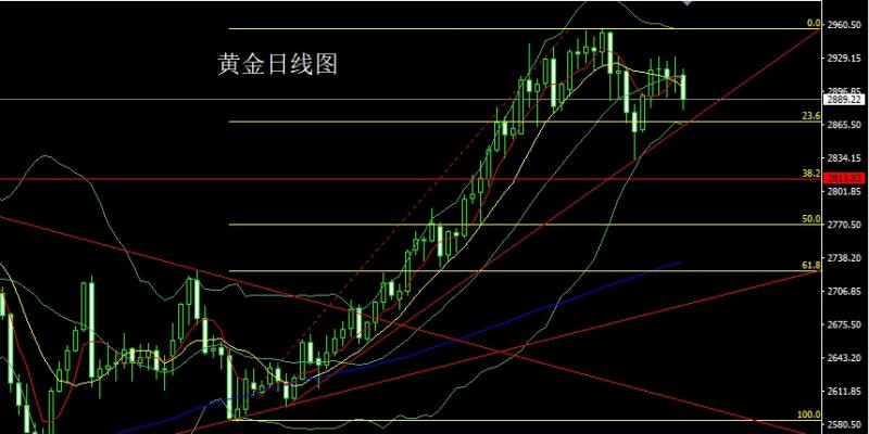 昨日黄金市场早盘开盘在2912.4的位置后行情先拉升给出2918.3的位置后行情震荡回落给出箱体低点2925.5的位置后行情宽幅震荡,美盘盘中阶段行情破位箱体低点后加速回落,日线最低给到了2880的位置后行情尾盘拉升日线最终收线在了2889.2的位置后行情以一根下影线稍长于上影线的大阴线收线,而这样的形态收尾后,今日的行情