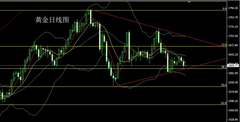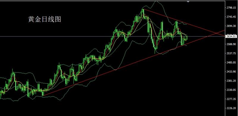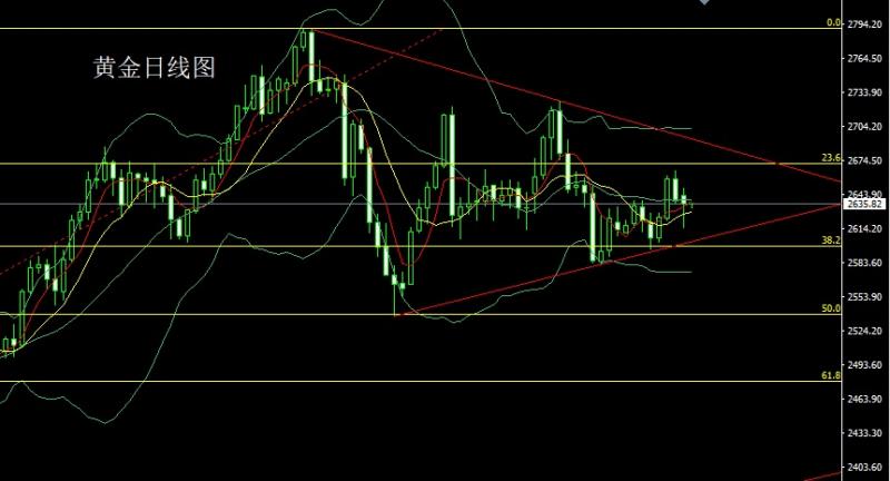 昨日黄金市场早盘开盘在2643的位置后行情先拉升给出2647.3的位置后行情快速回落,给出2624.8的位置后行情强势拉升,美盘开始时段日线最高触及到了2649.6的位置后行情受到基本面影响急速回落,日线最低给到了2614.5的位置后行情尾盘拉升日线最终收线在了2636.2的位置后,热线以一根下一年很长的锤头形态收线,而这样的形