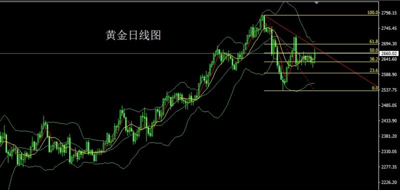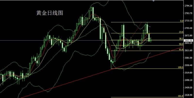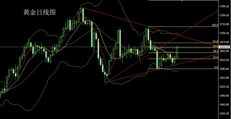 今日飞机晚点,才出海关所以金评简写!还请各位见谅。 昨日黄金市场早盘开盘在2652.6的位置后行情先拉升给出2658.9的位置后行情承压延续回落压力下行,日线最低给到了2632.7的位置后行情受到本轮上行斐波那契的50关口支撑小幅拉升,日线最终收线在了2646.2的位置后行情以一个下影线很长的锤头形态收线,而这样