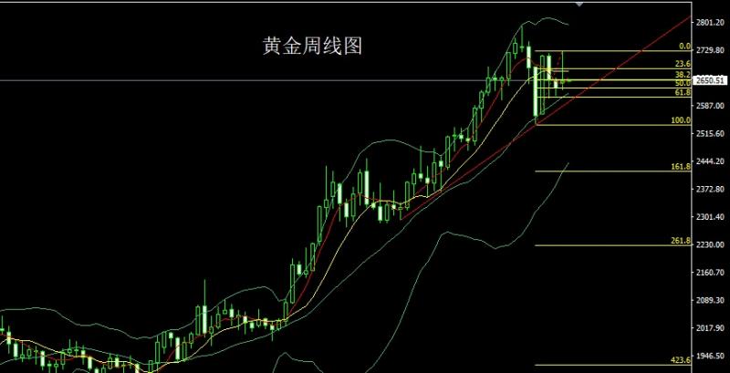 上周黄金市场周初行情开盘在2650.3的位置后行情小幅拉升给出2664.7的位置后行情震荡回落,周线最低给到了2582.6的位置后行情尾盘拉升,周线最终收线在了2622.8的位置后行情以一根下影线很长的类锤头形态收线,而这样的形态收尾后,周线搓揉整理,点位上,今日如果先回落2603多止损2597,目标看2625和2632,破位看2638和2