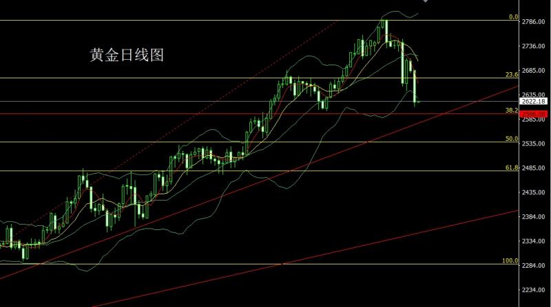 昨日黄金市场早盘开盘在2714.5的位置后行情小幅拉升给出2721.8的位置后行情强出现获利了结过程行情快速回落,日线最低给到了2615的位置后行情整理,日线最终收线在了2625.6的位置后日线以一根上下阴线等长的大阴线收线,而这样的形态收尾后,今日的行情依旧有回落压力,点位上,今日早盘如果先回落给出2603-2601多止损25