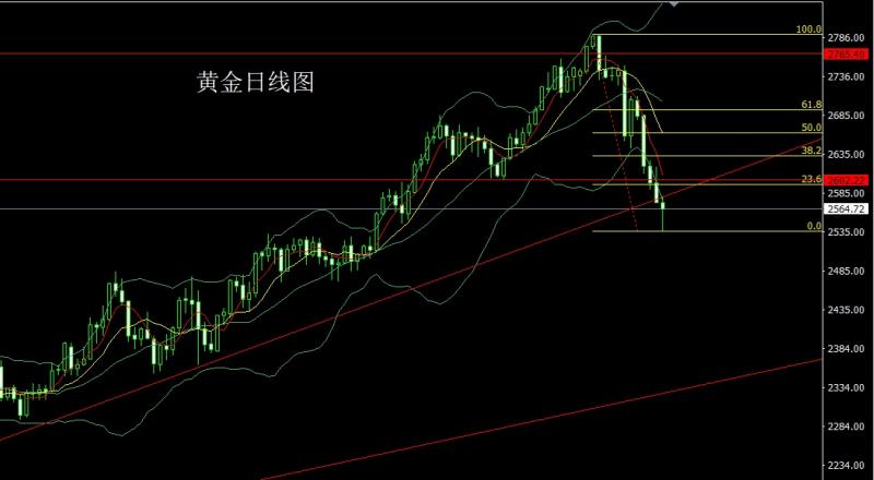 昨日黄金市场探底拉升,早盘开盘在2572.8的位置后行情先拉升给出2581.7的位置后行情延续回落压力下行,日线最低给到了2536.5的位置后行情超跌反弹强势拉升,日线最终收线在了2564.7的位置后行情以一根下影线极长的锤头形态收线,而这样的形态收尾后,日线初步探底,行情在今日有反弹的技术需求,点位上,今日2552多保守2