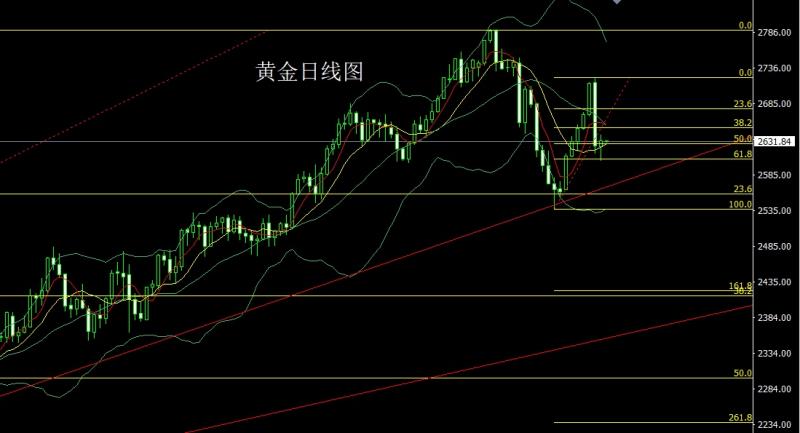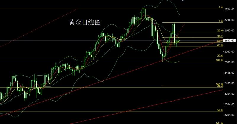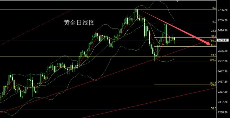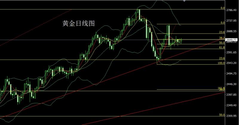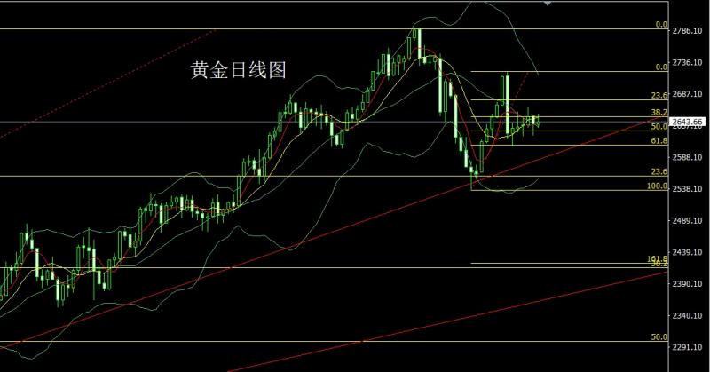昨日黄金市场区间震荡,早盘开盘在2638.2的位置后行情先回落,日线最低给到了2620.9的位置后行情震荡拉升,日线最高触及到了2649.8的位置后行情尾盘回落,日线最终收线在了2637.6的位置后行情以一根下影线稍长于上影线的长脚十字星形态收线,而这样的形态收尾后,本周2617的多减仓后止损跟进在2620,如果先回落给出2625