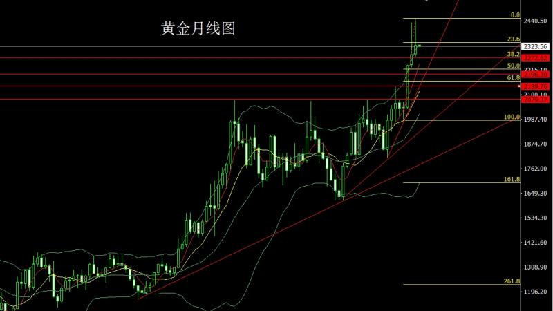 上周黄金市场完成5月的最终构造,今日收线回顾月线走势,月初行情开盘在2287.1的位置后行情震荡回来,月线最低给到了2276的位置后行情强势拉升,月线最高触及到了2250.2的新高后行情回落,月线最终收线在了2326.9的位置后行情以一根上影线极长的月线双倒锤头形态收线,而这样的形态收尾后,6月的月线技术有回落的技术压