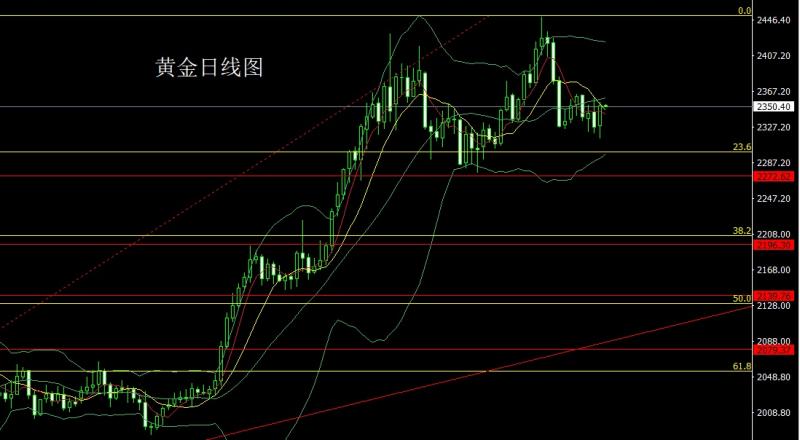 昨日黄金市场延续盘整过程,早盘开盘在2326.9的位置后行情先回落给出2325.6的位置后行情震荡拉升,欧盘市场给出2341.7的位置后行情回落,给出2327.7的位置后行情强势拉升,日线最高触及到了2357.5的位置后行情整理,日线最终收线在了2355.2的位置后行情以一根略带影线的饱和大阳线收线,而这样的形态收尾后,技术上目前