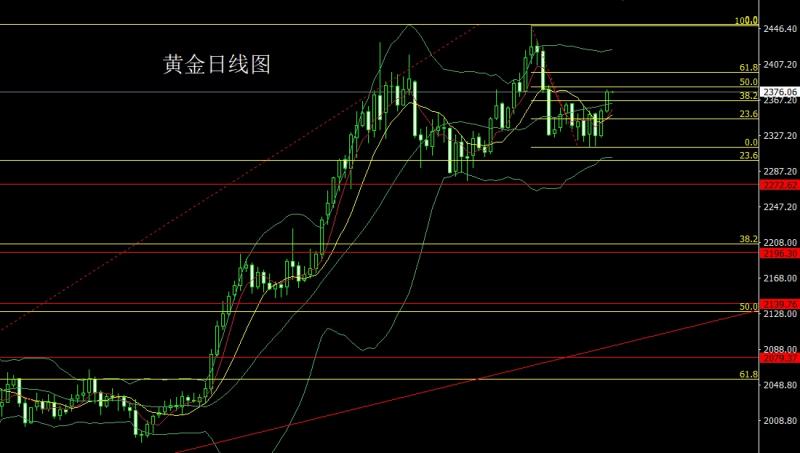 昨日黄金市场大区间波动,早盘开盘在2355.1的位置后行情直接拉升给出2375.2的位置后行情承压回落,日线最低给到了2353.2的位置后行情美盘时段受到基本面利多因素影响展开拉升过程,日线最高触及到了2378.6的位置后行情整理,日线最终收线在了2375.7的位置后行情以一根上影线稍长于下影线的大阳线收线,而这样的形态收尾