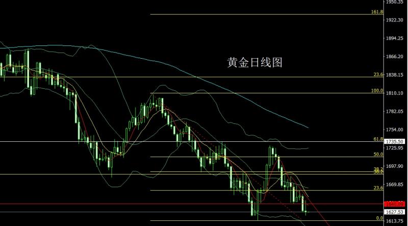 昨日黄金市场早盘开盘在1651.8的位置后行情小幅拉升给出1654.5的位置后行情展开回落,日线跌破1640支撑后行情快速下行,日线最低给到了1627.4的位置后行情整理,日线最终收线在了1629.3的位置后日线以一根上影线稍长的大阴线收线,而这样的形态收尾后,日线跌破支撑,今日的行情回踩空,点位上,今日的行情1635空保守163