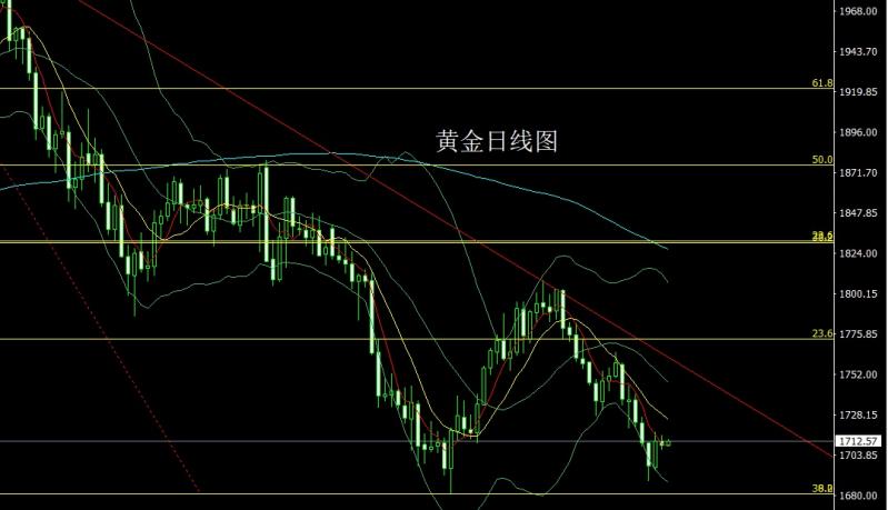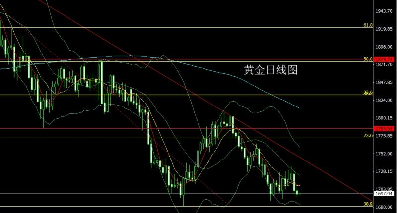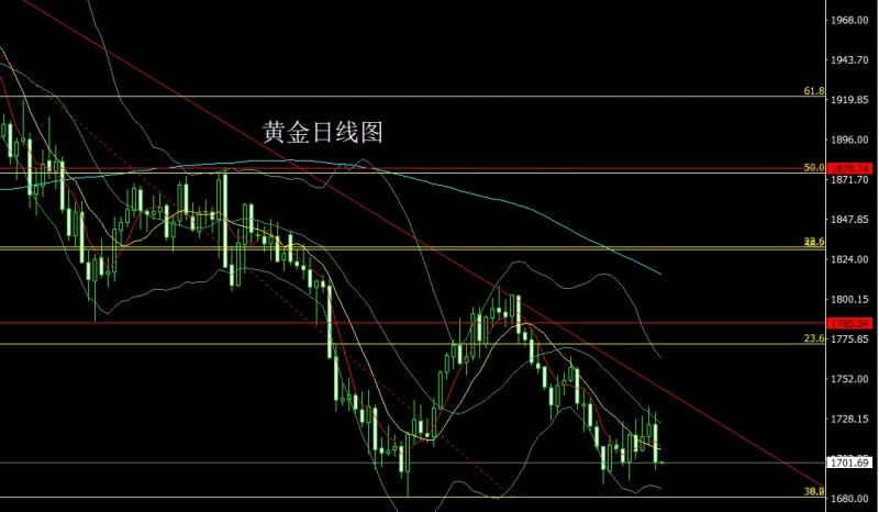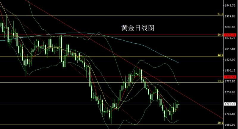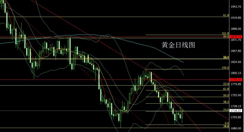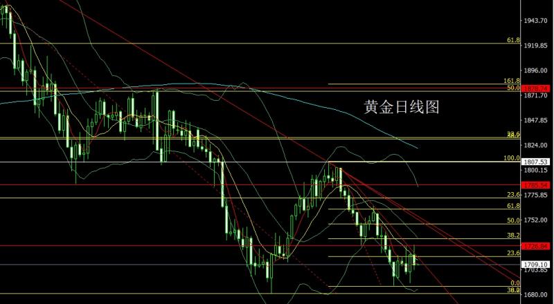 今日上午9:00-11:00本人在中金路演,希望平时关注并支持我的投资者能积极参与,路演地址:htt://roadhow.cnfol.co/how/32368 昨日黄金市场早盘开盘在1718.3的位置后行情先回落给出1713.2的位置后行情快速拉升,日线最高触及到了1728.2的位置后行情承压回落,日线最低给到了1703.8的位置后行情整理,日线最终收线在