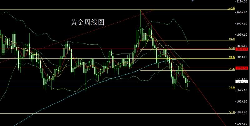 上周黄金市场周初开盘在1712.1的位置后行情先拉升给出1727.3的位置后行情回落,周线最低给到了1691.2的位置后行情快速拉升,周线最高触及到了1729.6的位置后行情整理,周线最终收线在了1717.4的位置后行情以一根下影线很长的启明星形态收线,而这样的形态收尾后,周线形态初步支撑,本周的行情回踩多,点位上,今日1712