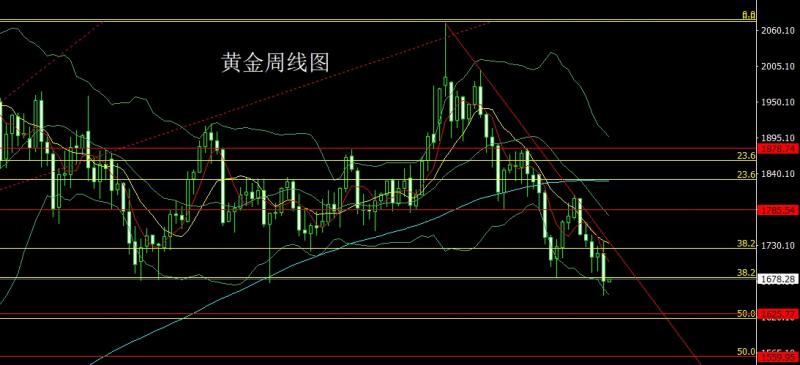 上周黄金市场周初开盘在1717.2的位置后行情先拉升,周年最高触及到了1735.4的位置后行情展开回落,周线最低给到了1653.7的位置后行情超跌整理,周线最终收线在了1675.3的位置后周线以一根下影线长于上影线的大阴线收线,而这样的形态收尾后,今日如果先拉升1684尝试空保守1687空止损1690,下方目标看1670和1660-1653.跌