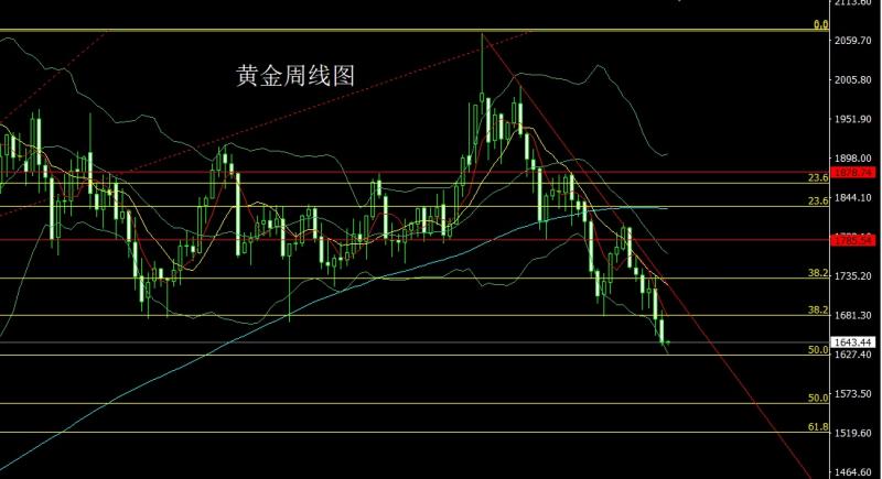 黄金市场上周开盘在1674.3的位置后行情先回落,给出区间低点1653的位置后行情强势拉升,周线最高触及到了1688的位置后行情回落,到周五行情跌破区间低点后行情加速下行,周线最低给到了1639.3的位置后行情整理,周线最终收线在了1643.5的位置后行情以一根上影线很长的大阴线收线,而这样的形态收尾后,今日的行情1654空