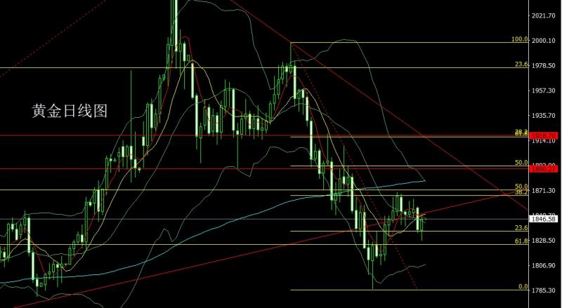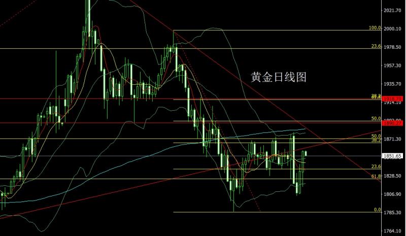 今日上午9:00-11:00本人在中金路演,希望平时关注并支持我的投资者能积极参与,路演地址:htt://roadhow.cnfol.co/how/31715 昨日黄金市场延续区间波动,早盘开盘在1852.2的位置后行情先拉升给出1855.3的位置后行情回落,日线最低给到了1839.8的位置后行情尾盘拉升,日线最终收线在了1847.8的位置后行情以一根下影
