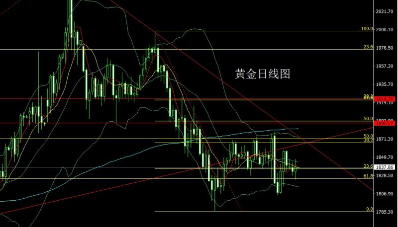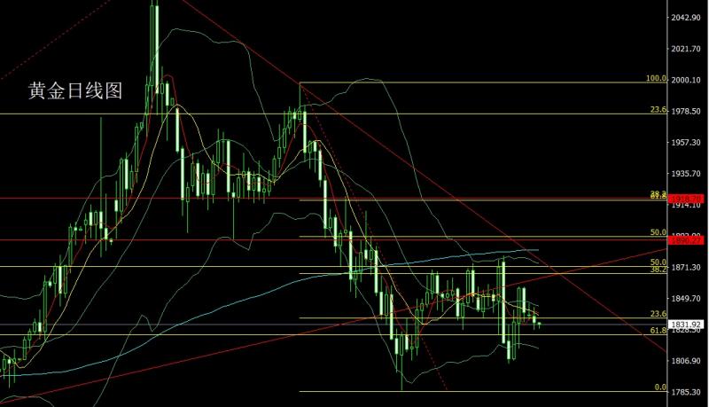 昨日黄金市场延续了周一阴包阳后的回落压力,早盘开盘在1820.3的位置后行情先回落给出1809.8的位置后行情快速拉升,日线最高触及到了1831.7的位置后行情回落,美盘最低给到了1804.7的位置收线,日线以一根上影线很长的中阴线收尾后,今日的行情依旧高空等待明晨数据,点位上,昨日1823的空止损跟进在1826持有,今日的行