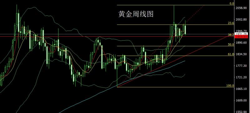 上周黄金市场周初开盘在1972.7的位置后行情先拉升给出1998.8的位置后行情冲高回落,周线最低给到了1926.2的位置后行情整理,周线最终收线在了1931.3的位置后行情以一根上影线很长的大阴线收线,而这样的形态收尾后,周线阴包阳,本周行情回踩延续做空,点位上,今日的行情1944空保守1946空止损1950,下方目标看1926,跌