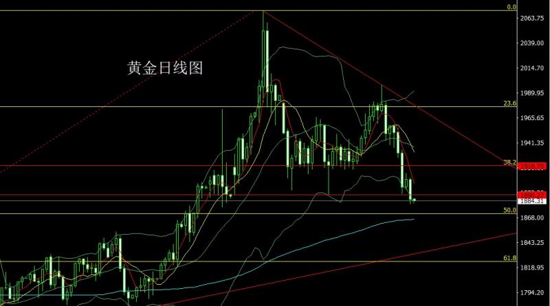 昨日黄金市场延续下行过程,早盘行情开盘在1931的位置后行情小幅拉升给出1934.6的位置后行情展开回落过程,盘中跌破1920支撑后行情加速下行,日线最低给到了前期低点同时也是本轮头颈线关口上方1891的位置后行情整理,日线最终收线在了1897.7的位置后行情以一根下影线稍长的大阴线收线,而这样的大阴线收尾后,今日的行