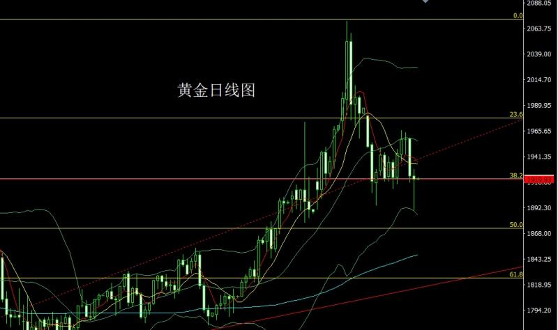 今日上午9:00-11:00我在中金路演,希望平时关注并支持我的投资者能积极参与,路演地址:htt://roadhow.cnfol.co/how/31185 昨日黄金市场早盘开盘在1922.5的位置后行情先小幅拉升给出1929.4的位置后行情延续前日大阴线的回落压力下行,日线最低给到了1889.9的位置后行情触及日线级别布林下轨支撑以及短期超跌的共同
