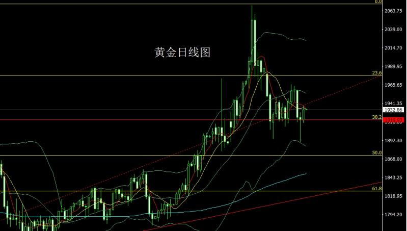 今日上午9:00-11:00本人在中金路演,希望平时关注并支持我的投资者能积极参与,路演地址:htt://roadhow.cnfol.co/how/31133 昨日黄金市场区间回落,早盘开盘在1935.5的位置后行情小幅拉伸给出1938.4的位置后行情震荡回落,美盘最低给到了1910.6的位置后行情整理,日线最终收线在了1921.2的位置后行情以一根下影线很
