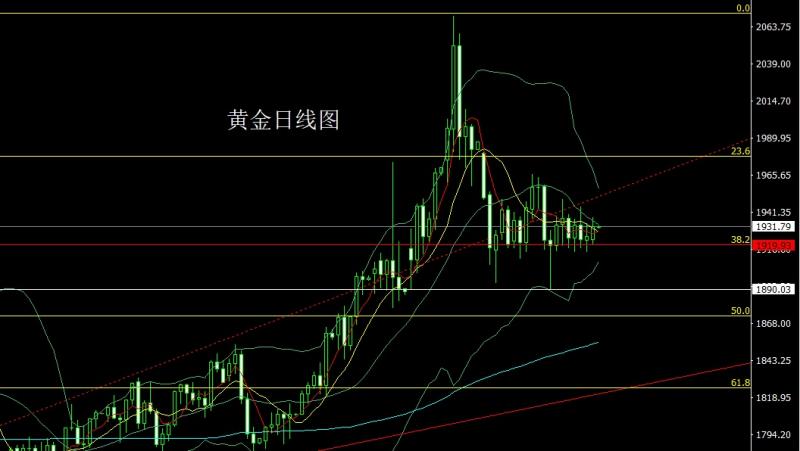 昨日黄金市场早盘开盘在的位置后行情先回落给出1915.7的位置后行情延续前日拉升趋势上行,日线最高触及到了1938.6的位置后行情整理,日线最终收线在了1932.4的位置后行情以一根上下影线基本等长的大阳线收线,而这样的形态收尾后,今日的行情早盘线先延续短空,点位上,上方2020的空和2006.6的空止损跟进在1980持有,昨