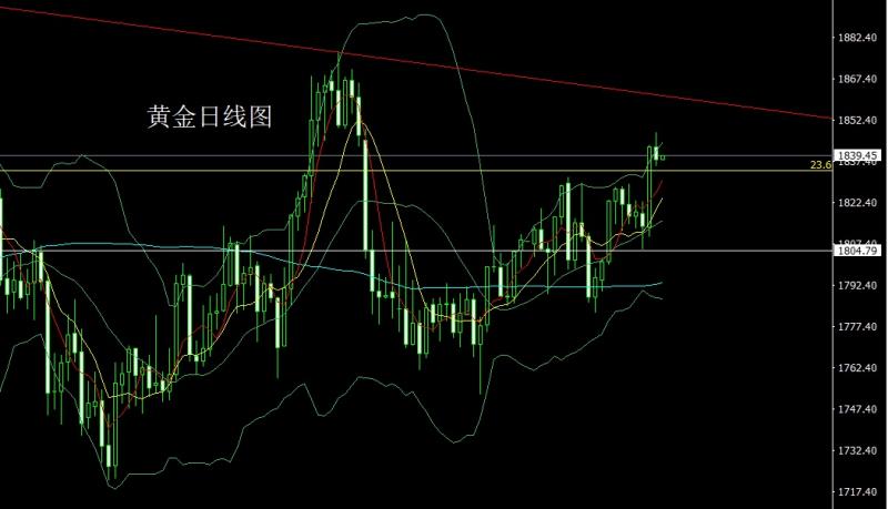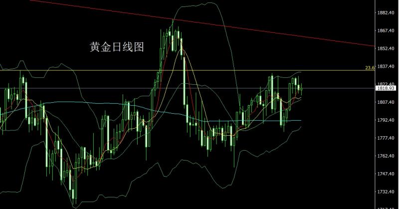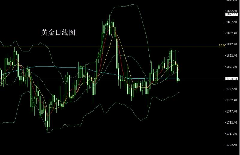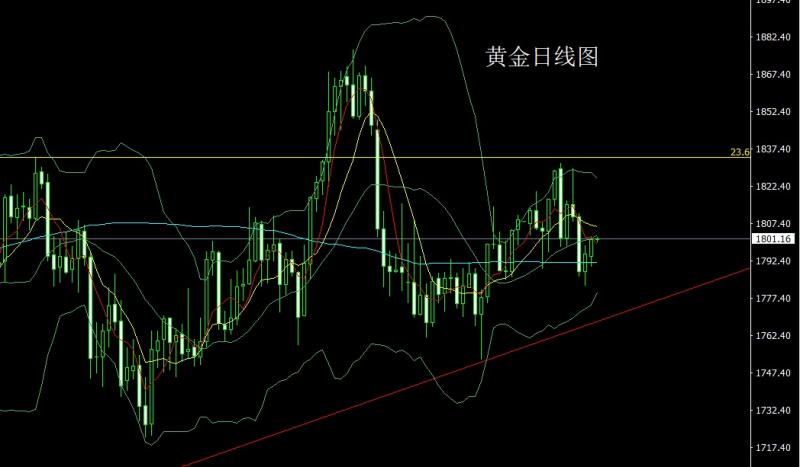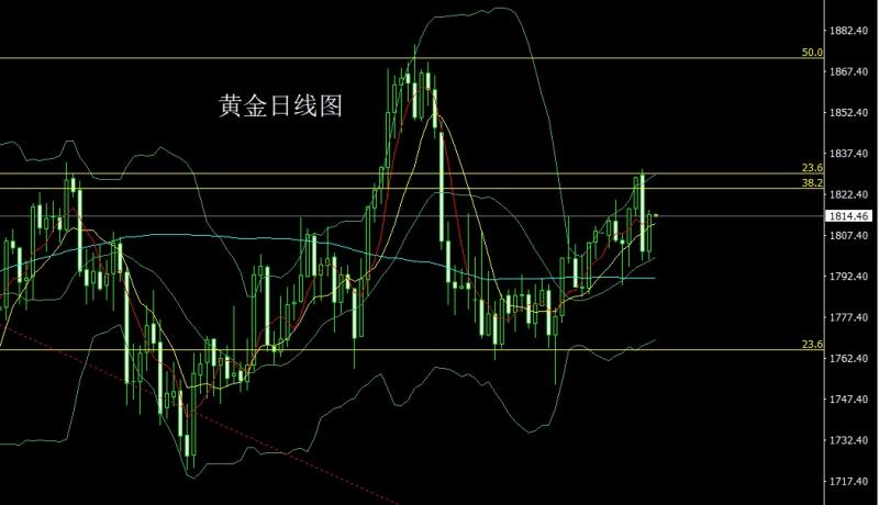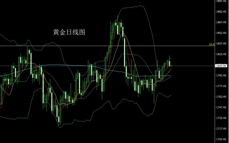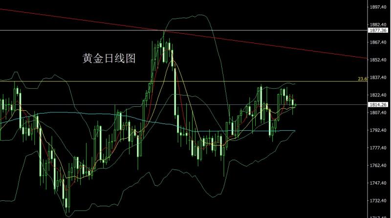 今日上午9:00-11:00本人在中金路演,希望平时关注并支持我的投资者能积极参与,路演地址:htt://roadhow.cnfol.co/how/30617 昨日黄金市场早盘开盘在1801.6的位置后行情小幅拉升给出1809附近后行情回落,美盘开始时段最低给到了1798.3的位置后行情受到日线布林中轨和基本面市场影响行情拉升,日线最高触及到了1816.8