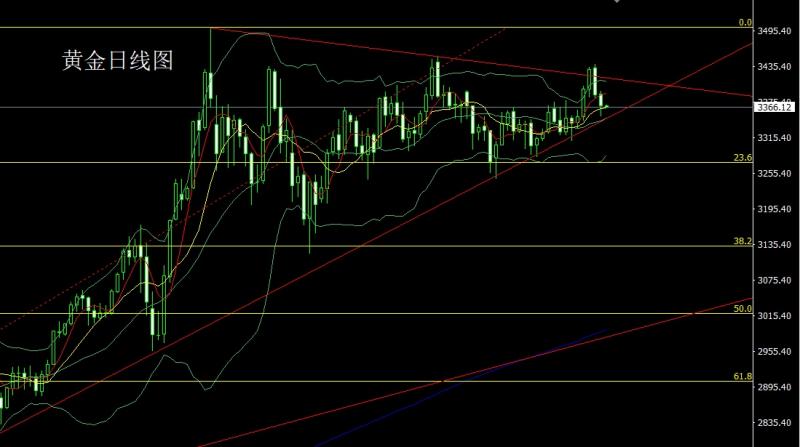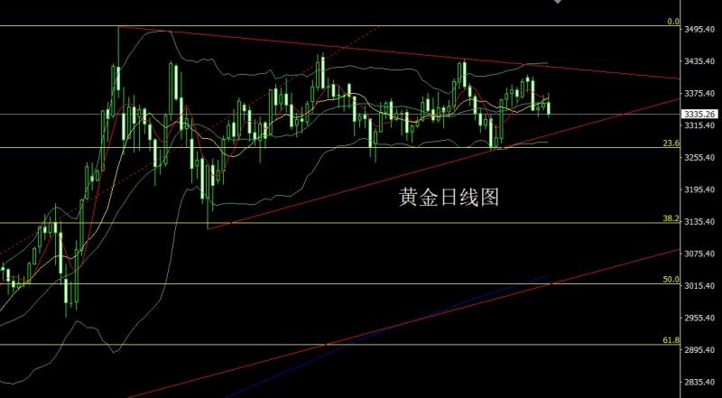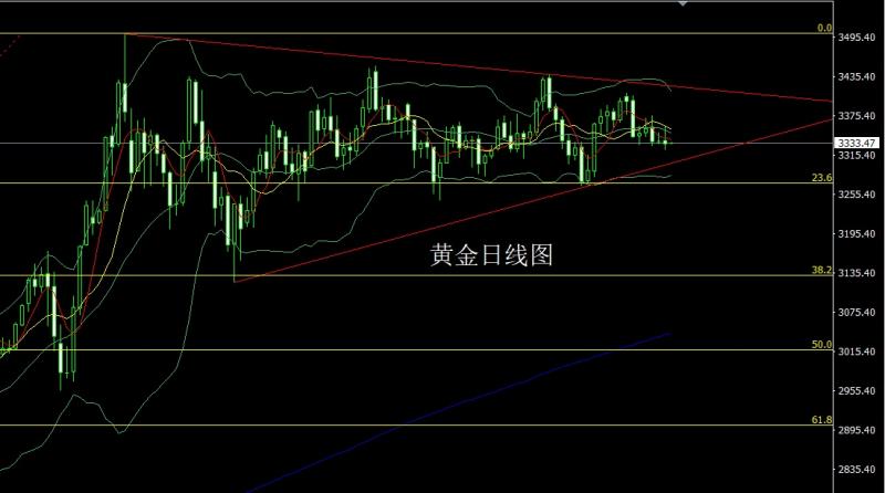 昨日黄金市场早盘开盘在3357.6的位置后行情先拉升,日线最高触及到了3375.3的位置后行情强势震荡回落,给出3341.2的位置后行情欧盘时段强势拉升,给出3366.6的位置后行情美盘时段受到基本面压力震荡回落,日线最低给到了3329.6的位置后行情低位震荡,日线最终收线在了3335.2的位置后,日线以一根上影线很长的中阴线收线