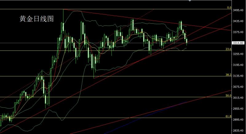 昨日黄金市场延续回落压力,早盘开盘在3333.3的位置后行情先回落给出3325.8的位置后行情强势拉升,日线最高触及到了3345.5的位置后行情尾盘回落,日线最低给到了3314.5的位置后行情整理,日线最终收线在了3315.8的位置后行情以一根上影线很长的中阴线收线,而这样的形态收尾后,今日的行情回踩后依旧有回落压力,点位上
