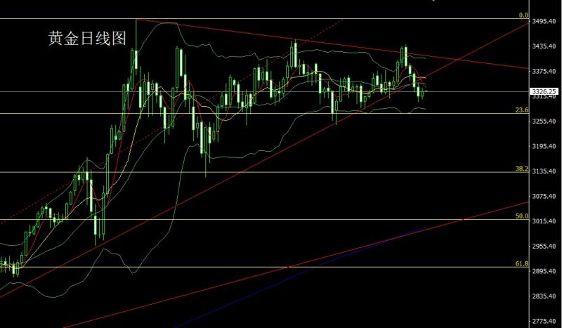 昨日黄金市场区间盘整,早盘开盘在3314.7的位置后行情先回落给出日线低点3307.5的位置后行情强势震荡拉升,美盘时段日线最高触及到了3334.3的位置后行情尾盘整理,日线最终收线在了3326的位置后,日线以一根上影响稍长于下影线的小阳线收线,而这样的形态收尾后,日线孕线结构,点位上,今日3317多保守3315多止损3311,