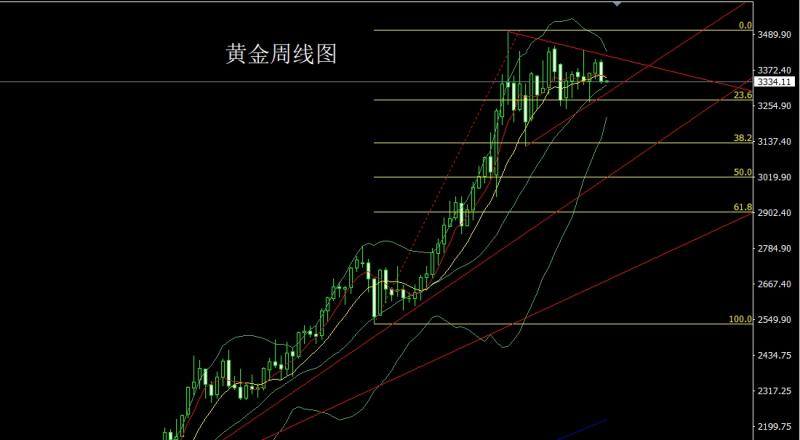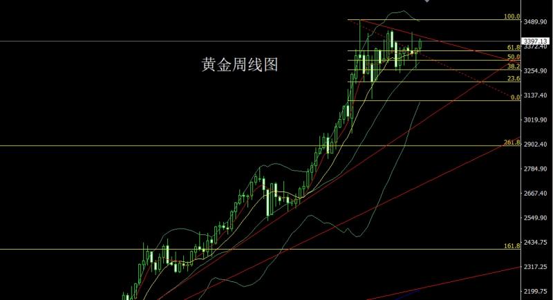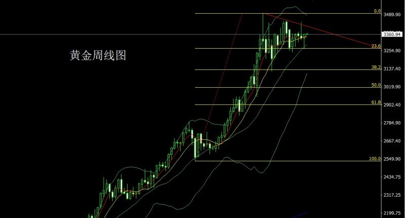 上周黄金市场受到基本面影响冲高回落,周初开盘在3350.4的位置后行情回踩3344.8的位置后行情强势拉升,周线最高触及到了3439.2的位置后行情强势回落,到周五周线最低给到了3324.6的位置后行情尾盘拉升,周线最终收线在了3336.5的位置后行情以一根上影线极长的倒锤头形态收线,而这样的形态收尾后,周线有看空需求,但早
