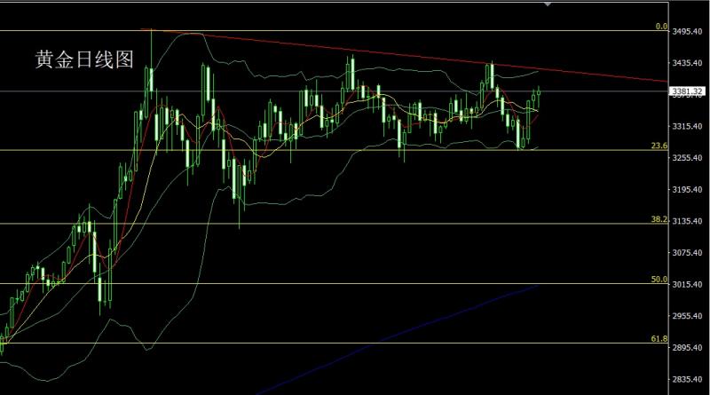 昨日黄金市场宽幅整理,早盘开盘在3374.8的位置后行情先小幅拉升给出3382.6的位置后行情震荡后回落,日线最低给到了3349.3的位置后行情美盘时段受到讲话影响强势拉升,日线最高触及到了3390.7的位置后行情整理,日线最终收线在了3380的位置后行情以一根下影线很长的锤头形态收线,而这样的形态收尾后,今日3357多保守335