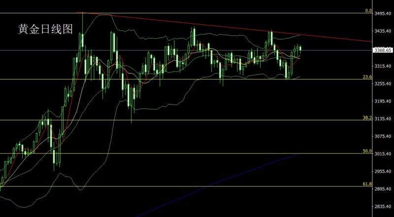 昨日黄金市场延续区间震荡,早盘开盘在3336.9的位置后行情先回落,日线最低给到了3323.1的位置后行情触及到了周线级别布林中轨支撑强势拉升,日线最高触及到了3358.4的位置后行情冲高回落,日线最终收线在了3332.5的位置后行情以一根上影线极长的射击之星形态收线,而这样的形态收尾后,今日的行情在技术上有回落压力,