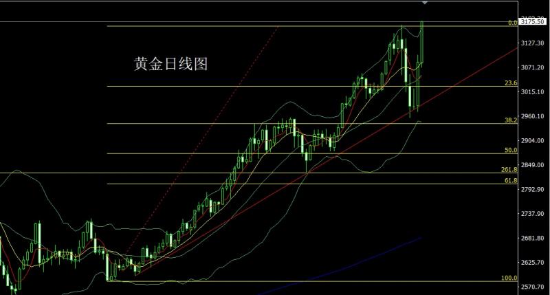 昨日黄金市场早盘开盘在3080.7的位置后行情先回落,日线最低给到了3071.1的位置后行情展开拉升过程,日线最高触及到了3176.6的位置后行情整理,日线最终收线在了3175.5的位置后,行情以一根下影线较长的大阳线收线,而这样的形态收尾后,日线有效破位前期历史高点,完成V形反转后今日的行情回踩多,点位上,昨日3105-310