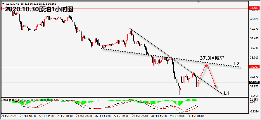原油策略:37.3区域空,止损37.8,目标35.8,35.1