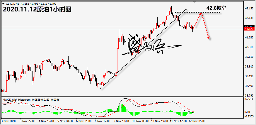 原油策略:42.8区域空,止损43.8,目标41.6,40.8