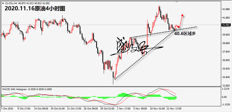 原油策略:40.6区域多,止损40.00,目标41.72,42.5,43.2