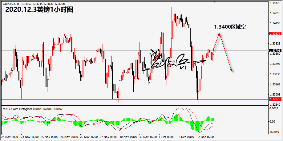 英镑策略:1.3400区域空,止损1.3150,目标1.3300,1.3250