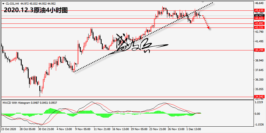 原油从位置来看,价格仍然处于区间44.5--45.6区间震荡之中。消息面目前利空原油,欧佩克方面并未发布公告。目前从技术面层面来看,价格如能反抽震荡区间的上边沿附近参与空头。如果不反抽,出消息直接利空,那么寻找机会参与空头。有在45上方参与的空头可以继续持有,防守46.2,下方直接跌破33.8位置才能打开进一步向下的空间。