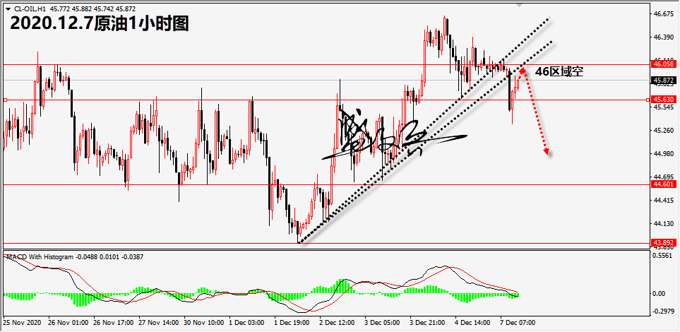 原油策略:46区域空,止损46.6区域空,目标44.5,43.8