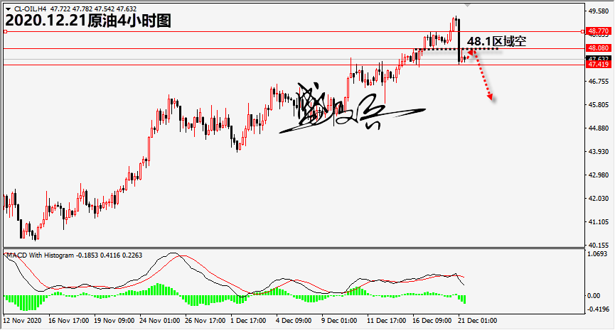 原油策略:48.1区域空,止损48.9,目标46.6,45.2