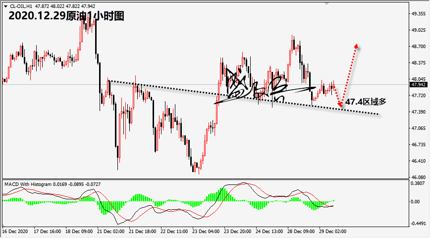 原油策略:47.4区域多,止损46.8,目标48.5,49.5