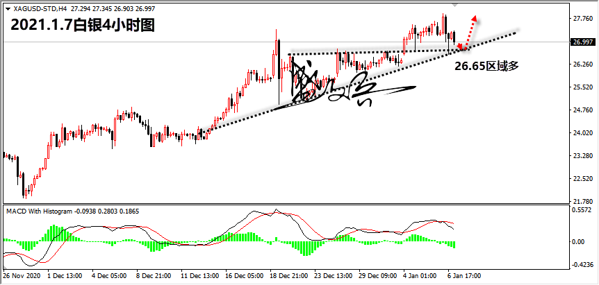 白银策略:26.65区域多,止损26.35,目标27.2,27.8