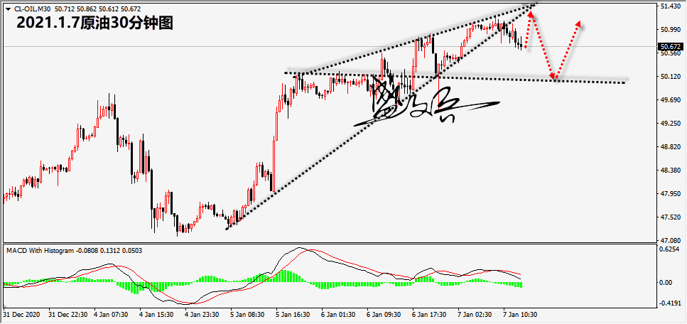因此,晚盘如果价格首先冲高在压力位承压可以参与空头,若直接回撤不破49.8区域仍考虑参与多头,目前具体位置不好把握。谨慎参与。激进者可以考虑在51.6区域参与空头,防守52.3;稳健者还是考虑回撤企稳后参与多头。关注美股走势对于原油的影响。