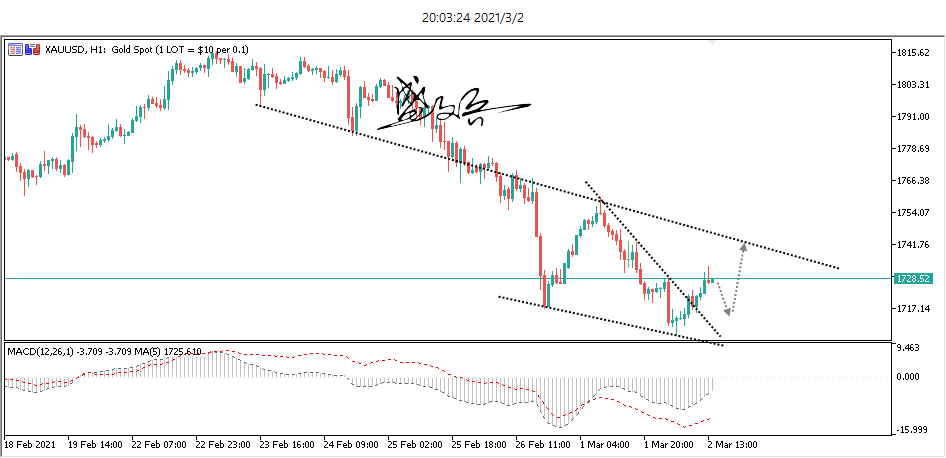 黄金,正如早盘分析时的预期,美盘时段开始反弹,1711给出的多单,已经获利将近20美元左右。建议各位投资者朋友适当减仓,或者全部获利离场。激进的朋友可以带保本损去博取更大的利润空间。