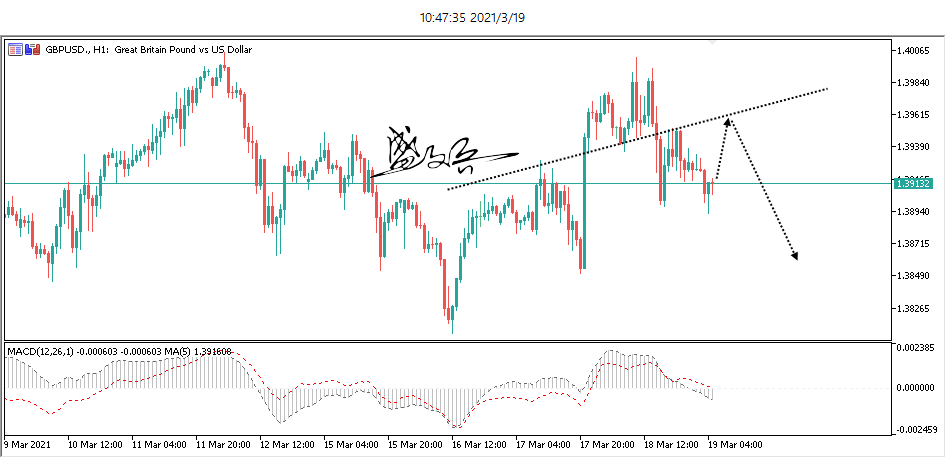 进场点:1.396附近,止损点:1.401,止盈点:1.388~1.383