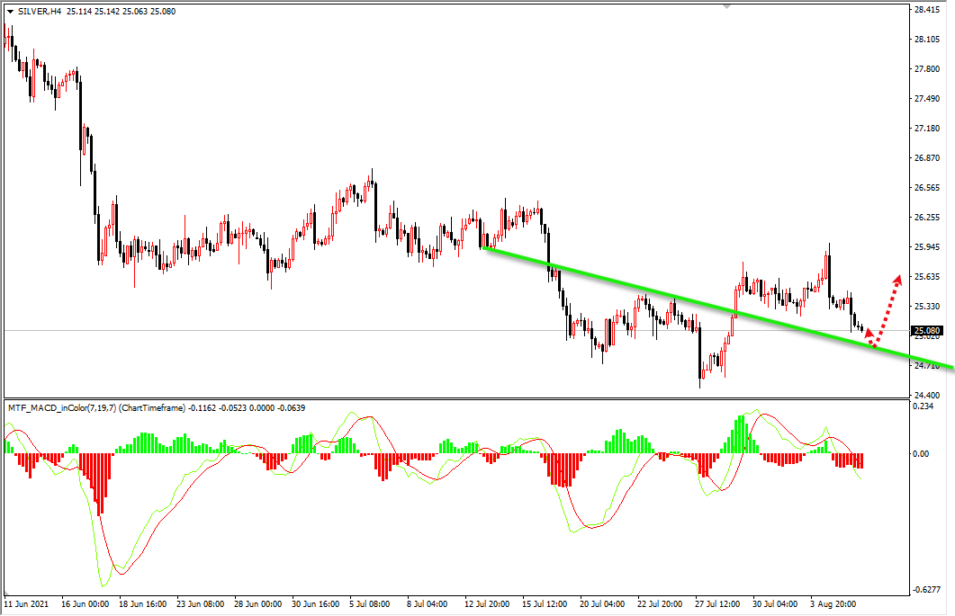策略:白银24.80区域多,止损:24.40,目标:25.30-25.90