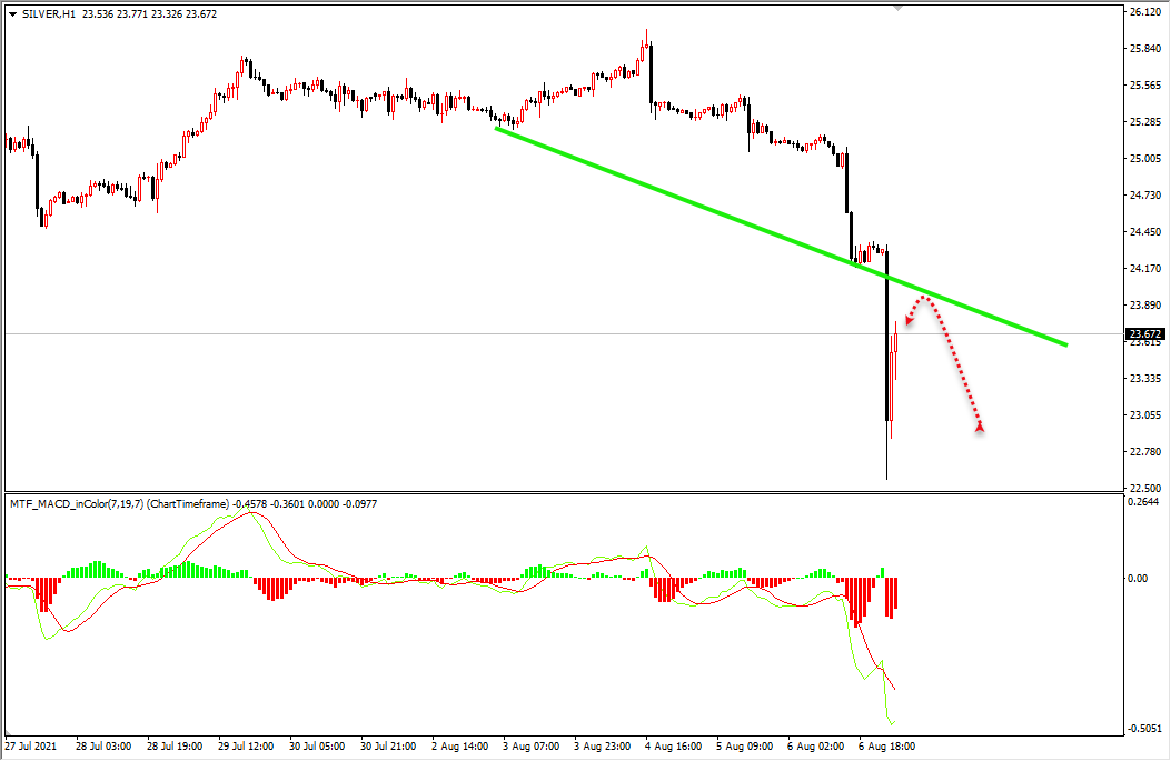 白银早间连续破位下行,今天关注24.10区域压力位。