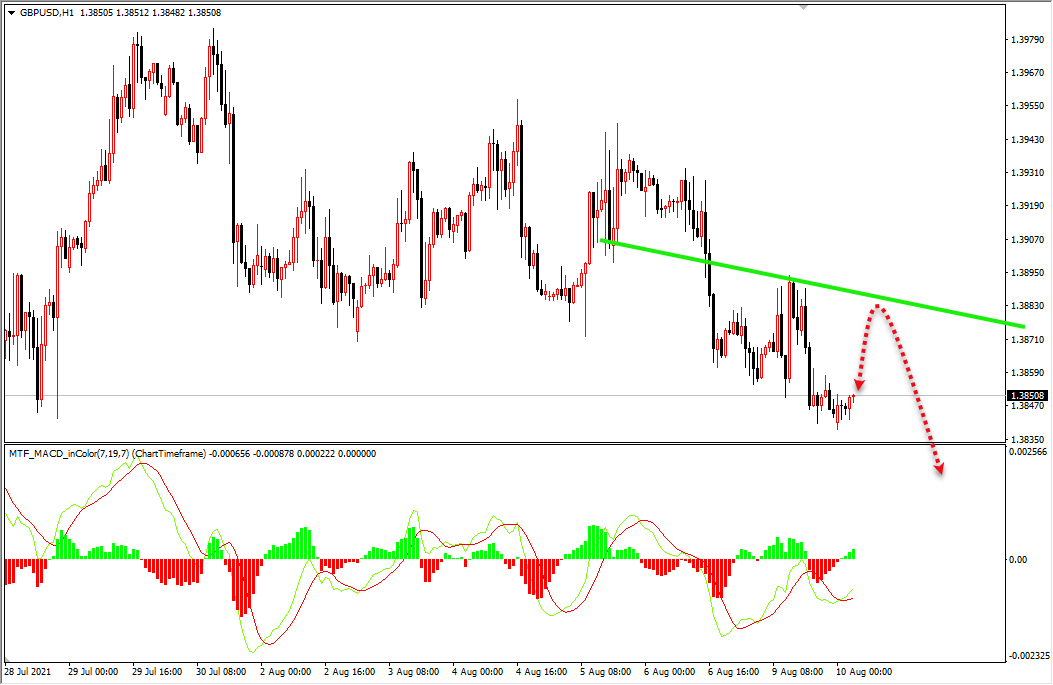 欧元昨天小幅度下跌,但是这个位置需要反复震荡,目前1小时下跌趋势线并未破位,所以日内回调1.1760区域空。