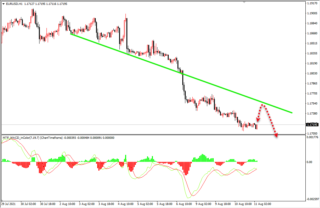 欧元现在属于小幅度下跌,今日要耐心等待欧元反弹压力位1.1750在行做空。