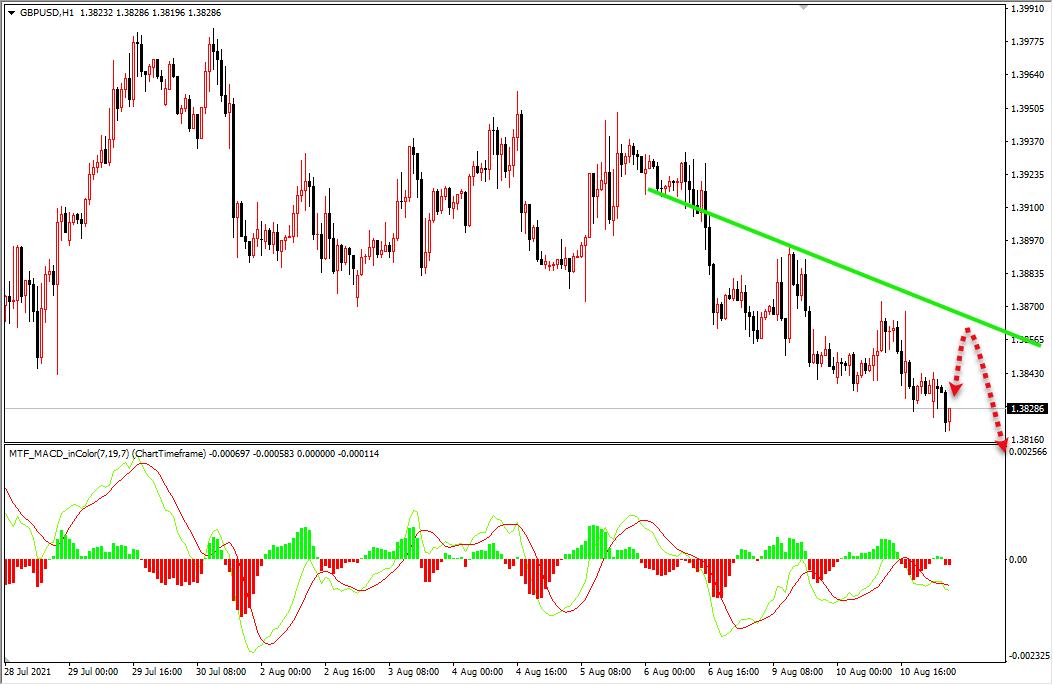 英镑4线级别虽然持续下跌,但是每次下跌幅度都很有限,所以今天一定要等反弹1.3860区域尝试做空。