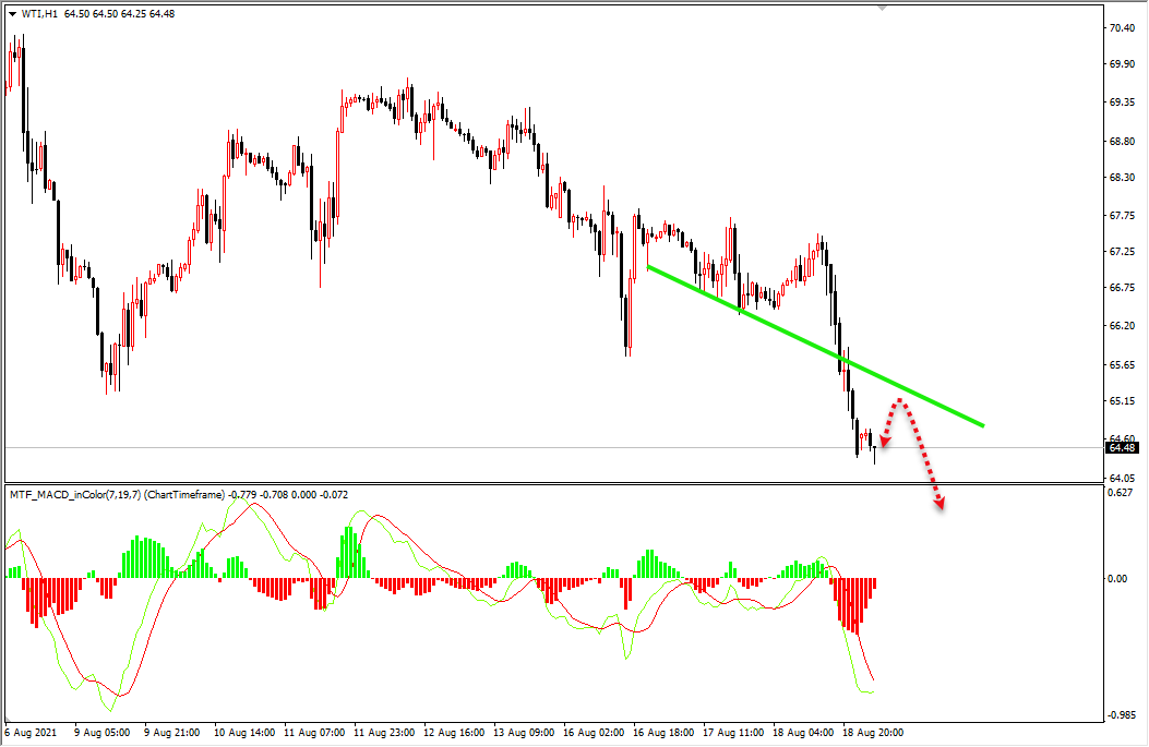 原油跌穿4小时关键位置,今天日内原油不能盲目追空,一定要等反弹压力位在空。