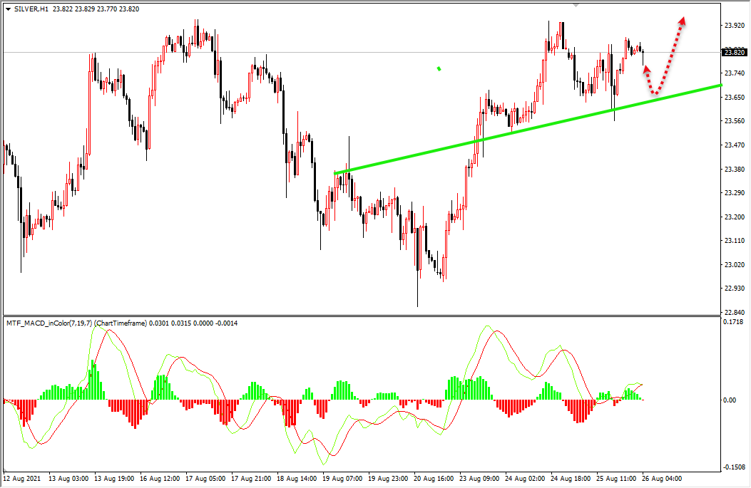 策略:白银23.40区域多,止损23.00,目标:23.90-24.40