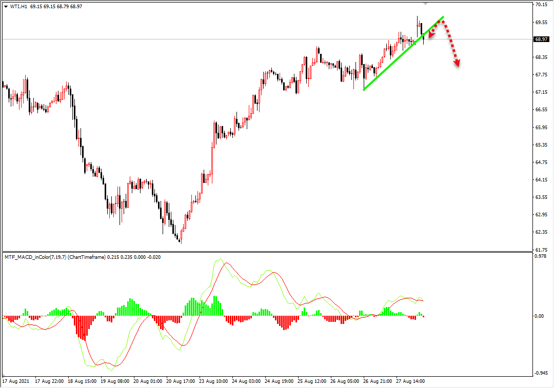 原油今天早间开盘突破一小时短期趋势线,所以今天日内原油先做空看回调为主。